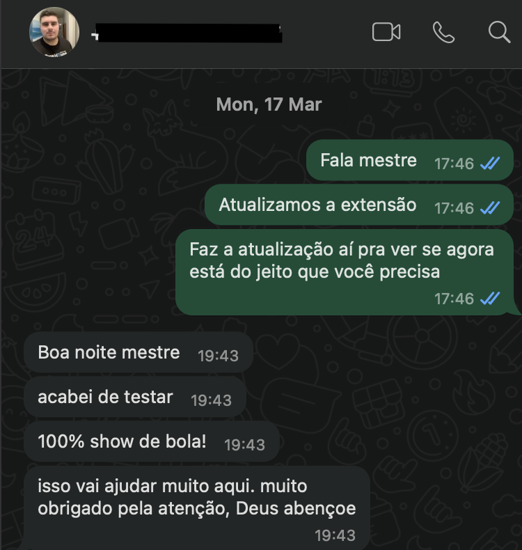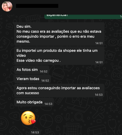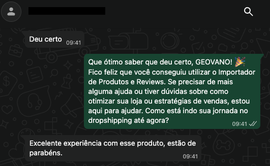 Import.ly funcionando. Cliente agradecendo. Missão cumprida.